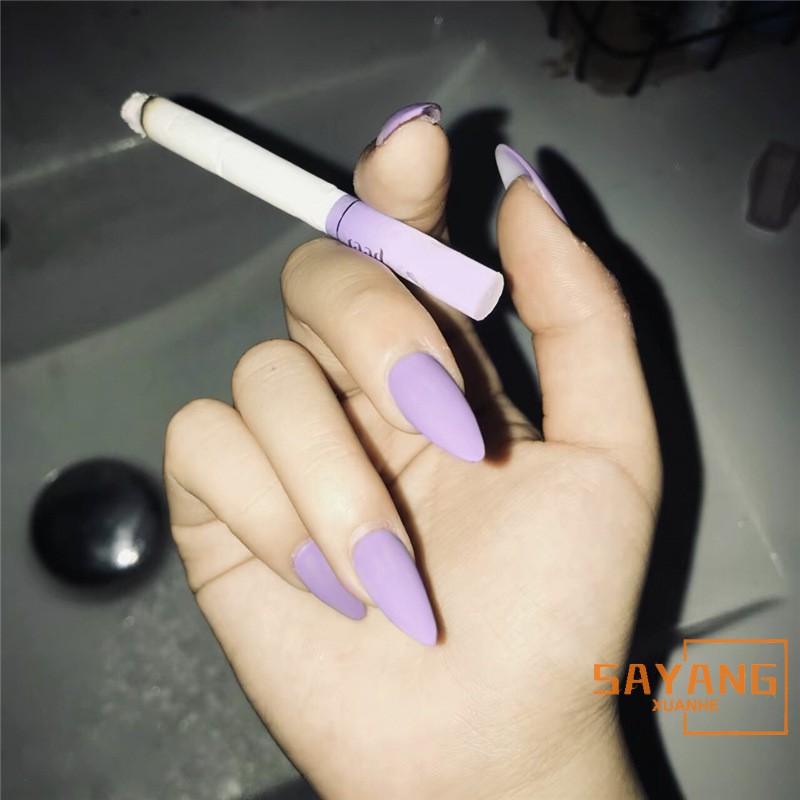Full Cover Fake Nail Japanese Matte Light Purple Solid Color Pointed Head Long Artificial Nails Shopee Philippines