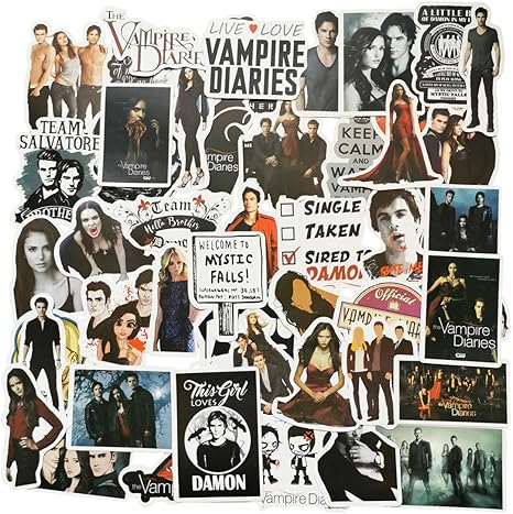 Amazon Com The Vampire Diaries Stickers 50pcs American Vampire Movie Love Story Vinyl Decals For Laptop Skateboard Snowboard Water Bottle Phone Car Bicycle Luggage Guitar Computer Ps4 The Vampire Diaries Kitchen Dining
